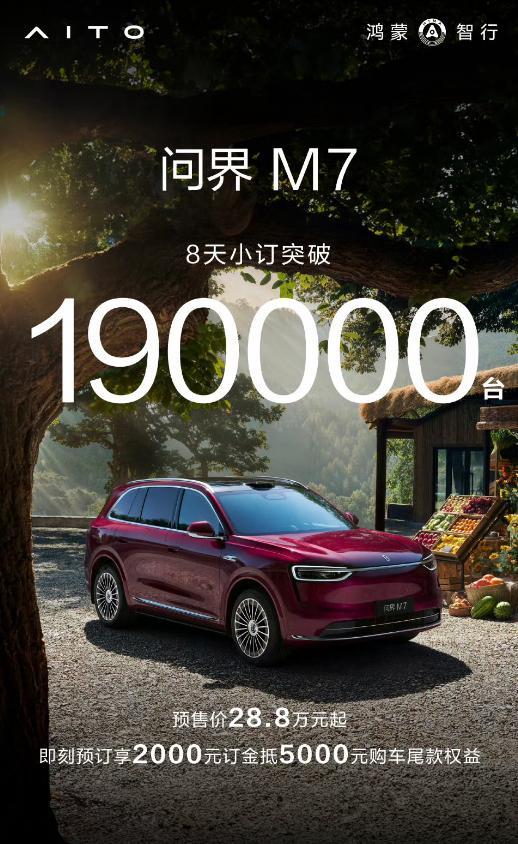 新的M7预售要求在8天内超过190,000,远远超过了华
