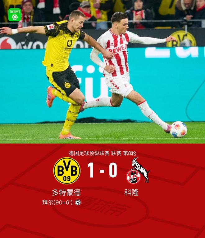 北京时间10月26日,2024-2025赛季德国足球联赛第八轮比赛,多特蒙德主场迎战科隆。上半场,安东禁区外强行射门,皮球高出球门。玛拉有机会,但她的射门偏出。菲利克斯·恩梅加从球门上方射门,但皮球没有进入球门。下半场,吉拉西门前大力射门,但皮球被门将挡出。拜尔在补时阶段从禁区后方低射锁定胜局。最终,多特蒙德凭借这个进球1-0战胜科隆。关键时刻:补时第90+7分钟,拜尔后点低射破门,多特蒙德1-0获胜。两支球队的球员都参加了比赛。比赛进行到第8分钟,瑞尔森传球,哈伯德队将球从底线解围。第11分钟,安东将球推入禁区,皮球高出球门。第19分钟,赛义德·马拉打进一球。第23分钟,阿德耶米传球给格罗斯,皮球高出球门。第33分钟,阿德耶米突破抽射,但皮球被门将挡出。第35分钟,多特蒙德在防守区内连续失误,让赛义德马拉破门。菲利克斯·努梅加在第 38 分钟进球。第52分钟,吉拉西禁区外大力射门,但皮球被门将挡出。第62分钟,费利克斯·努梅加跟进推射,但门将将球停了下来。第69分钟,多特蒙德做出改变。拜尔和萨比策替补上场。阿德耶米在第80分钟被换下,但他并不满意。第84分钟,比奥·席尔瓦替补登场。哈伯兹膝盖受伤,被担架抬走。科洛尼亚没有做出任何改变,少了一名球员。第90分钟,布兰特起脚大力射门,但皮球被门将挡出。第90分钟和第7分钟,拜尔凭借一脚远射攻入一球。加时赛第90分钟和第7分钟,他从后面射门。多特蒙德 1-0 球队阵容 球队阵容 技术统计