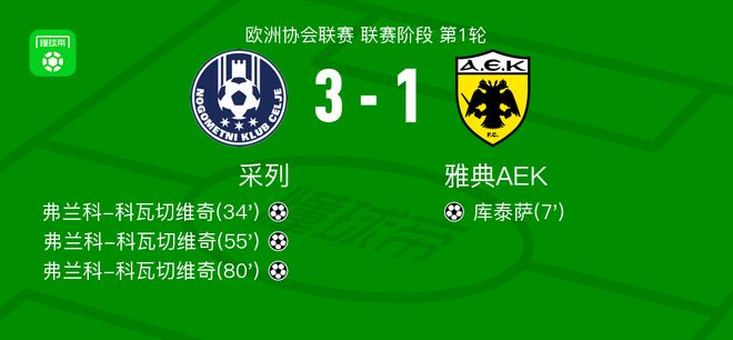 在欧洲协会联赛舞台的第一轮中,塞尔面对雅典AEK。在比赛开始时,雅典AEK首先通过精确的合作为库塔(Kuta)得分,并带领球队。塞雷尔随后逐渐控制了节奏,弗兰克·科瓦塞维奇(Frank Kovasevic)匹配了他的分数。在下半场,塞雷尔继续向他施压,弗兰克·科沃塞维奇(Frank Kovasevic)在队友约瑟夫(Joseph)的协助下攻入了另一个进球,帮助球队通过。比赛结束后,阿维迪(Avdilly)发送了一个关键传球,弗兰科·科瓦塞维奇(Franko Kovacevic)完成了进球,并获得了帽子戏法,进一步加强了帽子。最后,西尔雷以3-1击败雅典AEK。在伟大时刻的第七分钟里,雅典球员埃克·埃利亚森(Ek Eliason)帮助克里特斯(Kritesa)进球。在第34分钟,塞雷·弗兰克·科瓦塞维奇(Serre Frank Kovasevic)球员攻入了进球。在第55分钟,樱桃球员约瑟夫夫(Josephov)帮助弗兰克·科瓦塞维奇(Frank Kovasevich)得分。在第80分钟,Celerrere Avdili的球员帮助Franko Kovacevic纪念了Thegoal。设备对齐的技术统计数据