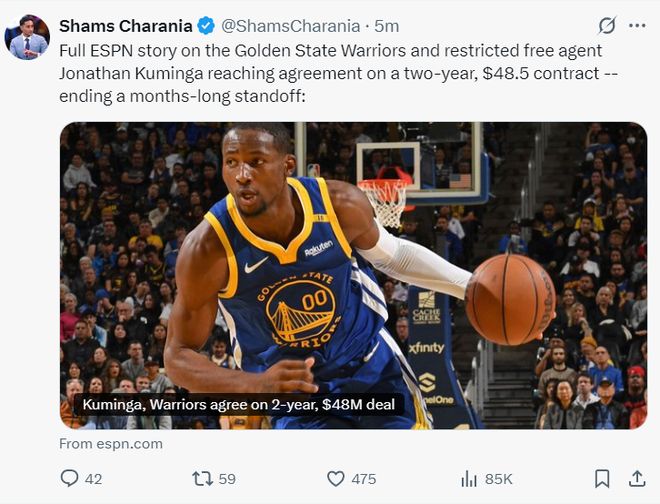 10月1日,在北京时代,乔纳森·库宁加(Jonathan Cumingga)的战士标签终于结束了,终于成为库欣加(Cumingga)之间的承诺。他与4850万勇士队签约了两年,包括球队的选项,而不是库明加想要的球员。根据Shams的说法,明天夏天,Cumeta选择了一份两年的合同为4,850万合同来恢复谈判。谈判中的设备选项的勇士框架是坚定不移的。一旦双方签署了合同,勇士队就可以探索明年一月达成康明加协议的可能性。作为回应,NBA记者埃文(Evan)的故事写道:库米娜(Kumina)签订了两年合同,拥有4,850万个设备选项,这意味着他的合同将是本赛季勇士的主要商业筹码。勇士媒体:在夏天的夏季和放松战士之后,最后的勇士队与库明加达成了协议。 4850万份两年合同是一个有利可图的结果。战士可以专注于他们的胜利之旅。祝贺战士管理层说服Kumingga保持团队的选择。由于勇士队延伸到Cumingga,所以是否有五个老虎:库里,豪者,朱门,巴特勒和霍福德?这套参赛者已有180年的历史,平均年龄为35.8岁,这使其成为联盟中最古老的首发小组。库宾加续签合同后,他肯定会扮演更重要的角色(不一定是最初的运动)。科尔会继续取代库米娜吗?在先前的采访中,科尔拒绝谈论与库米纳签订合同。他觉得科尔先前对库米娜的态度仍然有态度。也许他真的会继续说Kumina在Banco。相反,他开始使用五只老虎为库明加(Kumingga)制作第一场比赛。之后,您可以看到五个平均年龄35.8岁的超级虎虎。